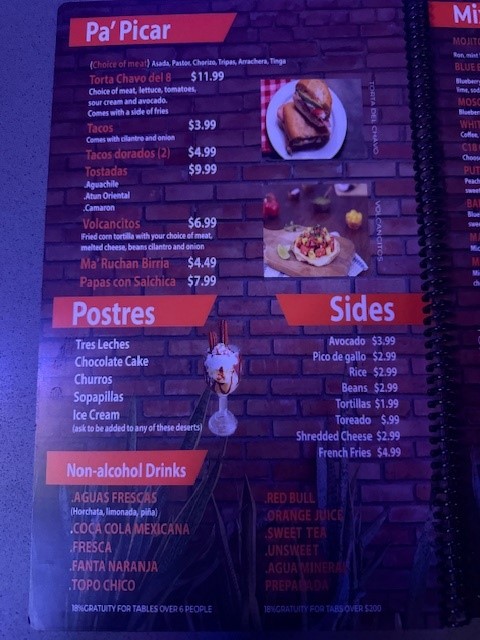 You can expect a variety of dishes that work well for different times of day—whether you’re stopping by for a laid-back lunch or settling in for an evening with friends. Popular choices like Pizza Pastor and Pozole bring comforting warmth, while the range of hot sauces adds a personalized kick to your meal. The drink menu complements the food effortlessly, featuring classic Mexican sodas, Micheladas, and inventive cocktails like Cantaritos, perfect for refreshing moments.
